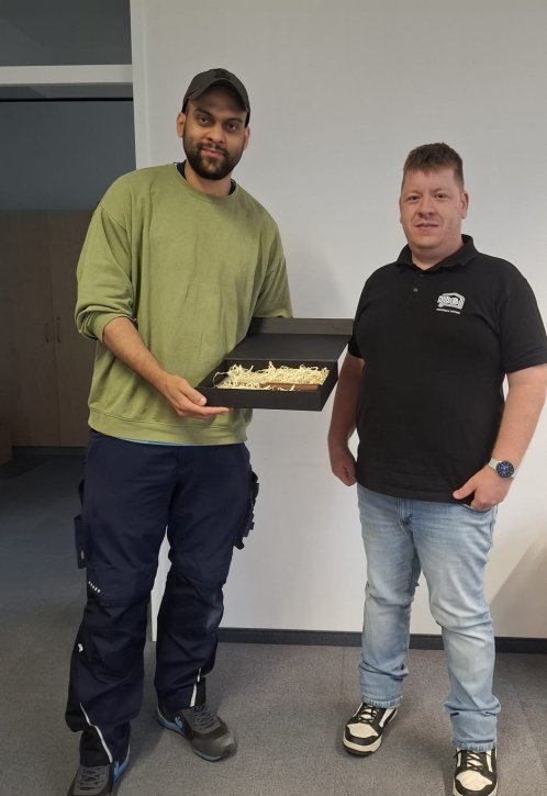 Ebenso gratulieren wir Morteza Mohammadi und Jonah Buse (mit sehr gut) zur bestandenen Gesellenprüfung. Beide sind jetzt ausgelernte Anlagenmechaniker für Heizung und Sanitär. Auch sie setzen ihren Weg bei uns fort – wir freuen uns auf die weitere Zusammenarbeit mit euch!